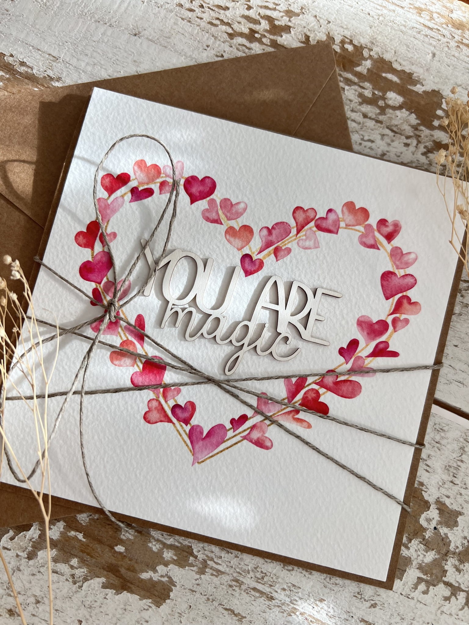 Wyjątkowa kartka ręcznie robiona walentynkowa - kartka z sercem You are magic
