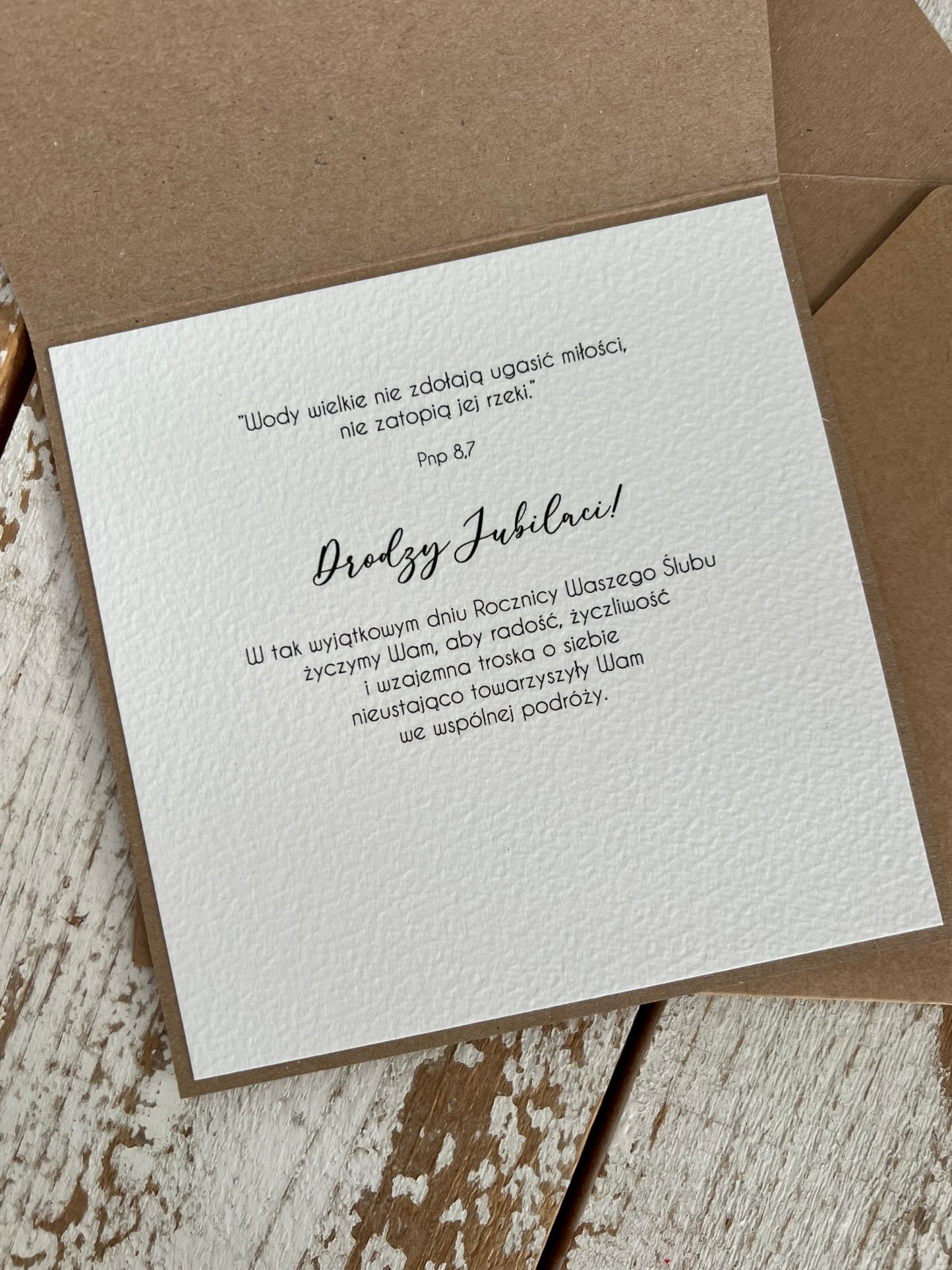 Wymiary: kartka 14x14cm otwierana do góry, przewiązana lnianym sznureczkiem w zestawie z kopertą.