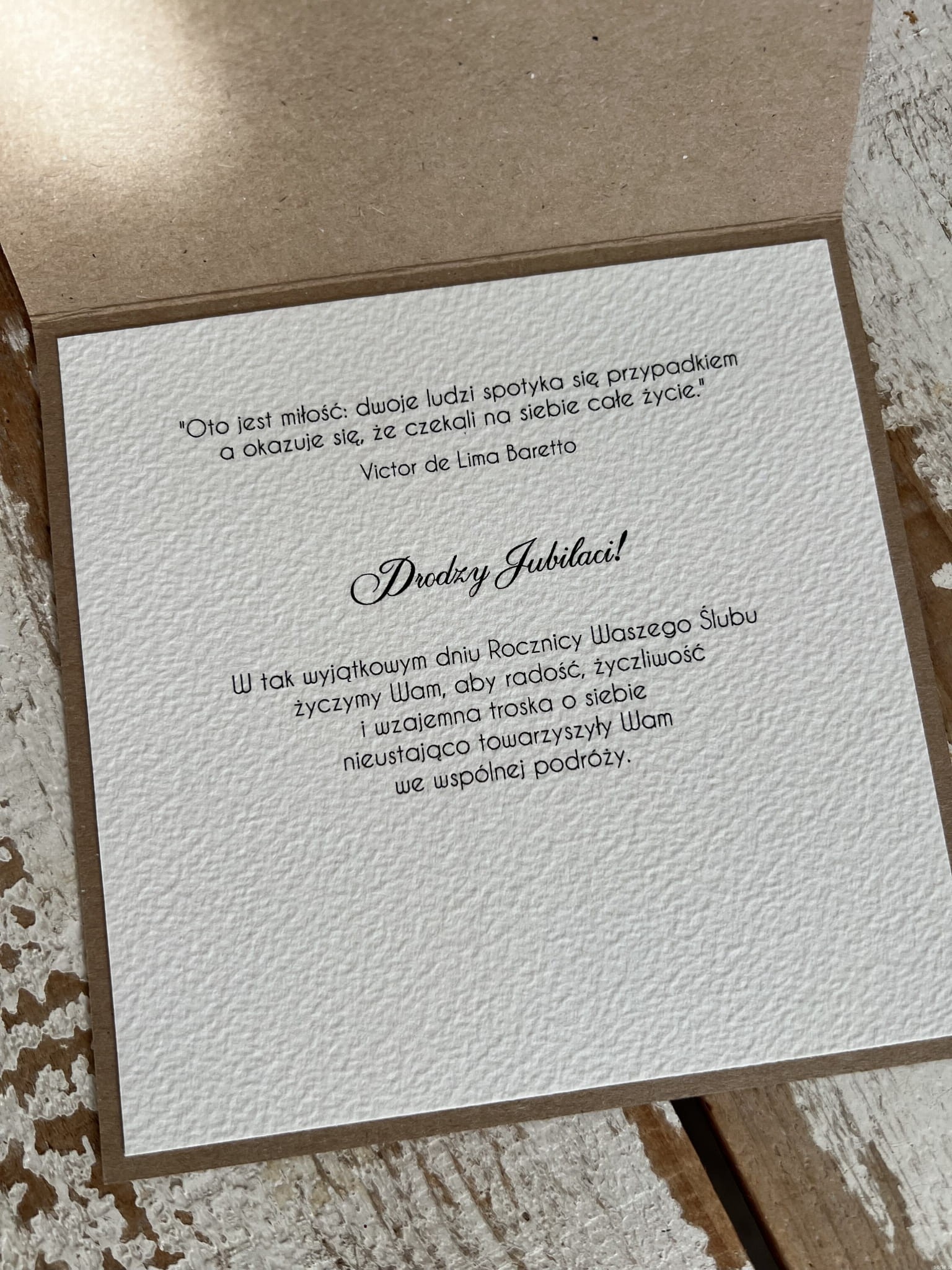Rustykalna kartka życzenia z okazji 40. rocznicy ślubu - czterdziesta rocznica ślubu - pomysł na prezent