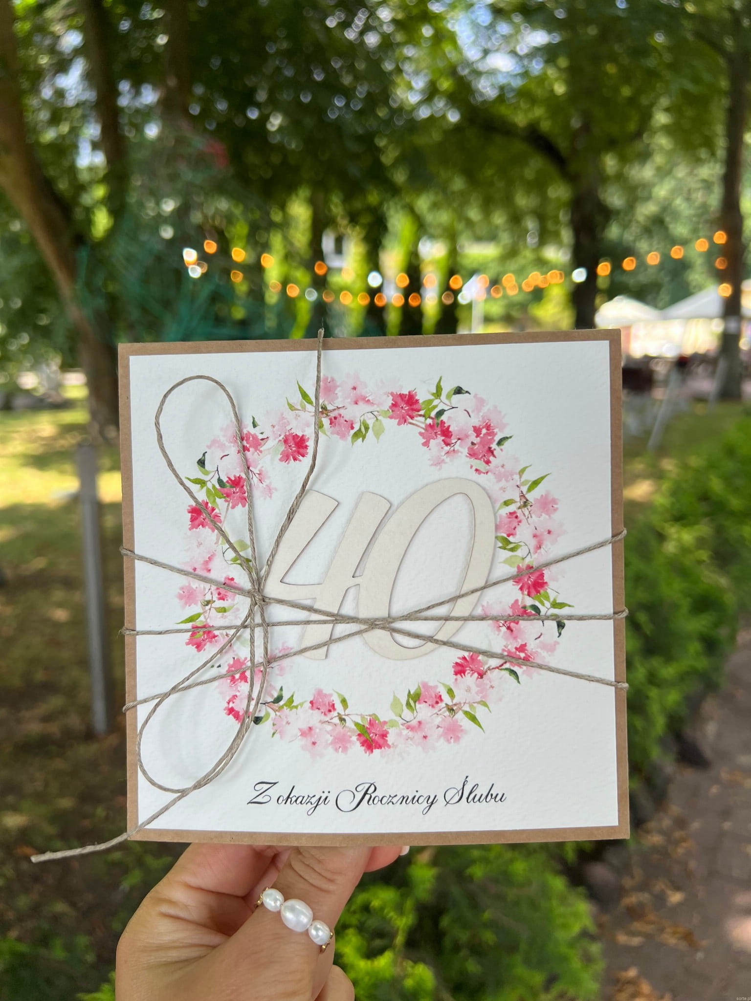 Wyjątkowa kartka ręcznie robiona życzenia z okazji 40. rocznicy ślubu - czterdziesta rocznica ślubu - pomysł na prezent