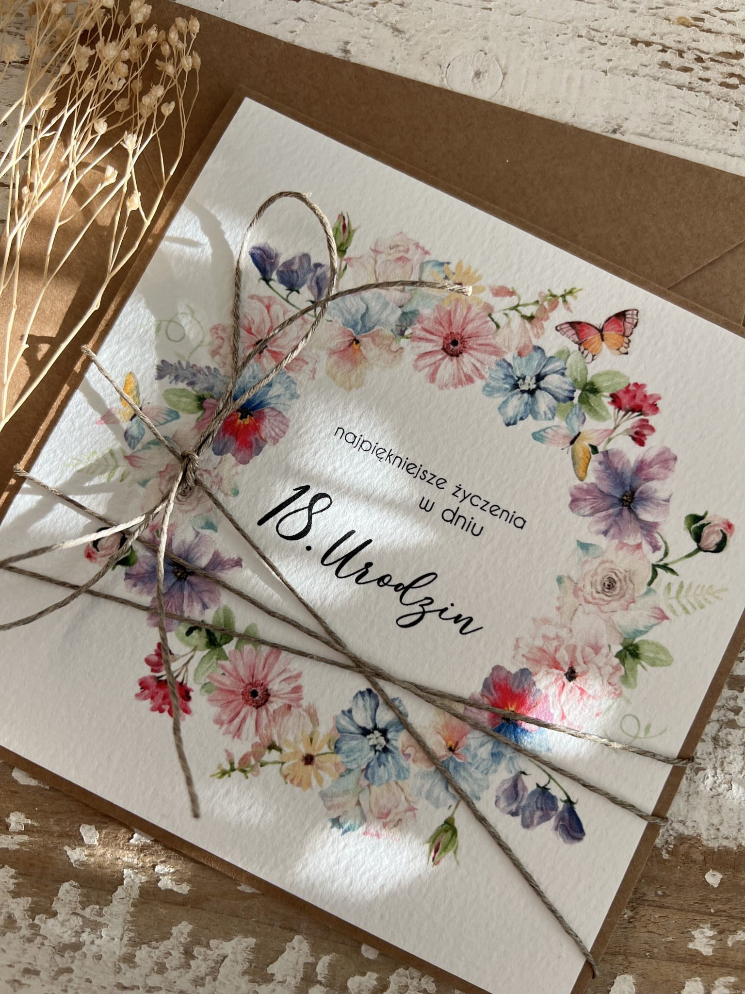 Wyjątkowa ręcznie robiona kartka na 18-ste urodziny, osiemnastka, pomysł na prezent na osiemnastkę dla dziewczyny (z)
