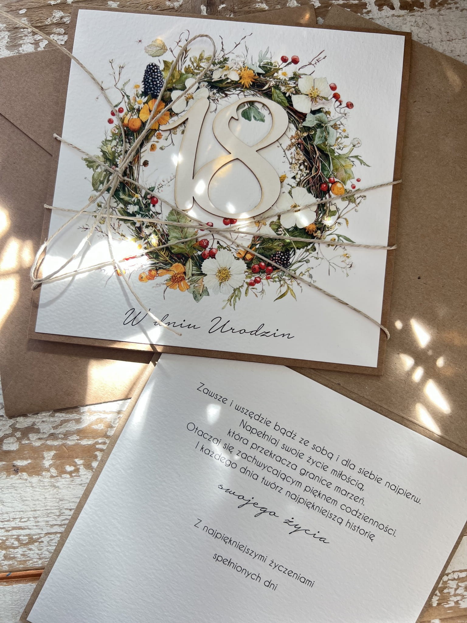 Wyjątkowa ręcznie robiona kartka na 18-ste urodziny, osiemnastka, pomysł na prezent życzenia na osiemnastkę dla dziewczyny od matki chrzestnej