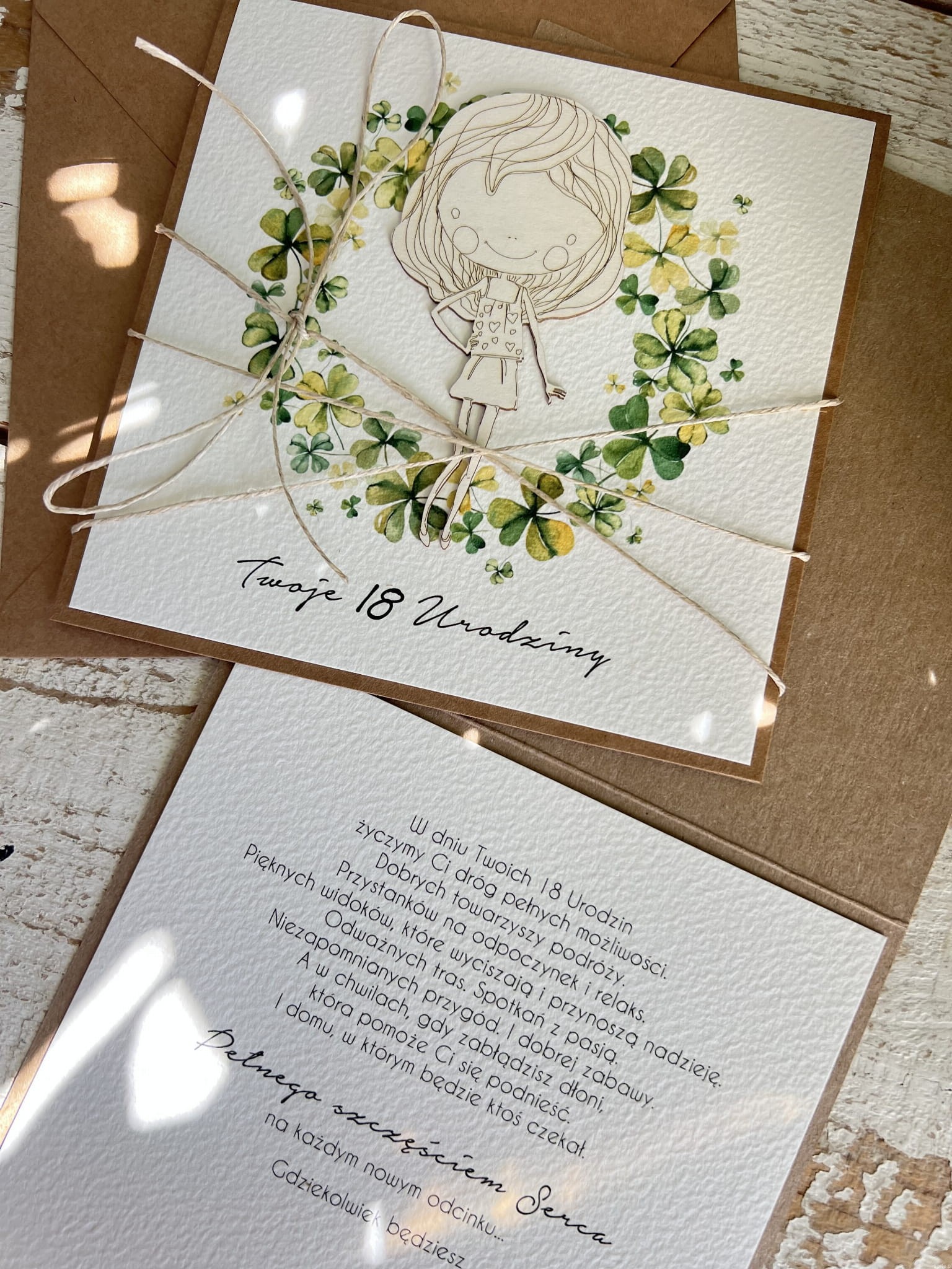 Wyjątkowa ręcznie robiona kartka na 18-ste urodziny, osiemnastka, pomysł na prezent życzenia na osiemnastkę dla dziewczyny od matki chrzestnej