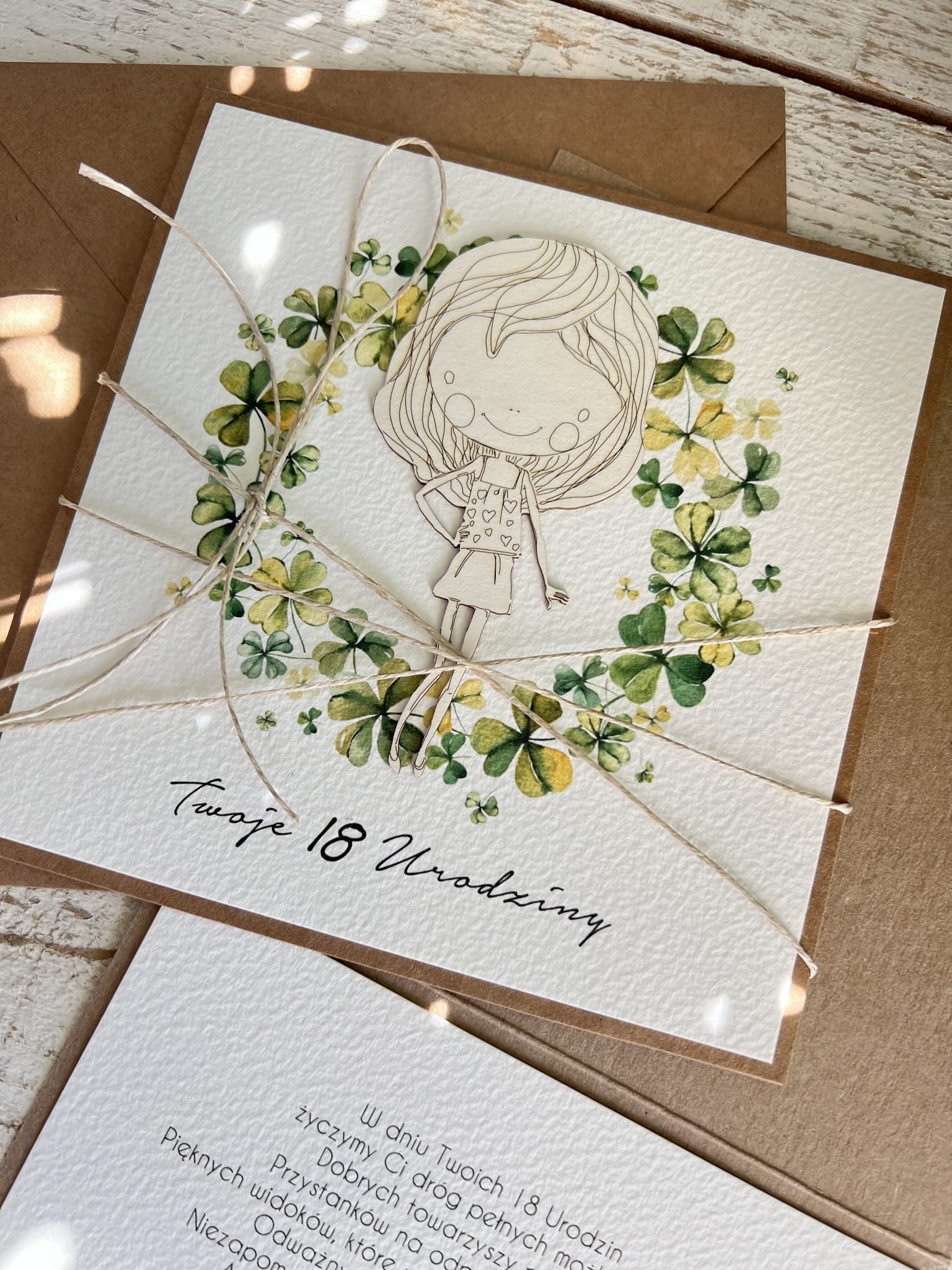 Kartka ręcznie robiona Urodzinowa z czterolistną koniczynką