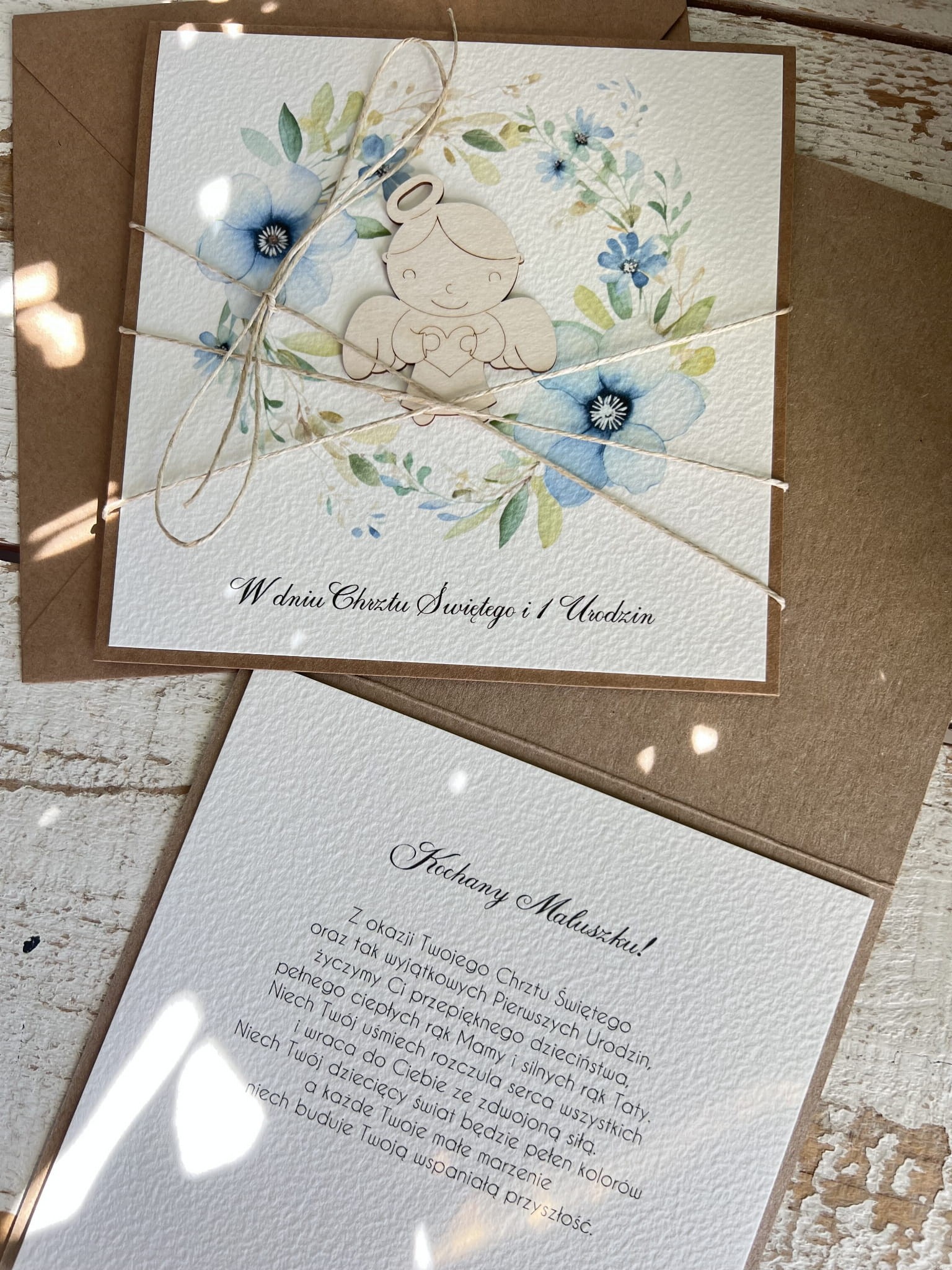 Wyjątkowa ręcznie robiona kartka na chrzest i roczek jednocześnie + najpiękniejsze życzenia