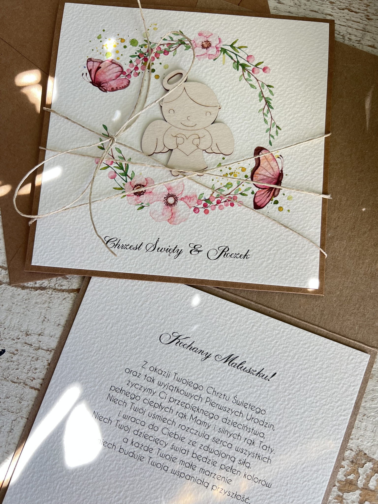 Wyjątkowa ręcznie robiona kartka na chrzest i roczek jednocześnie + najpiękniejsze życzenia