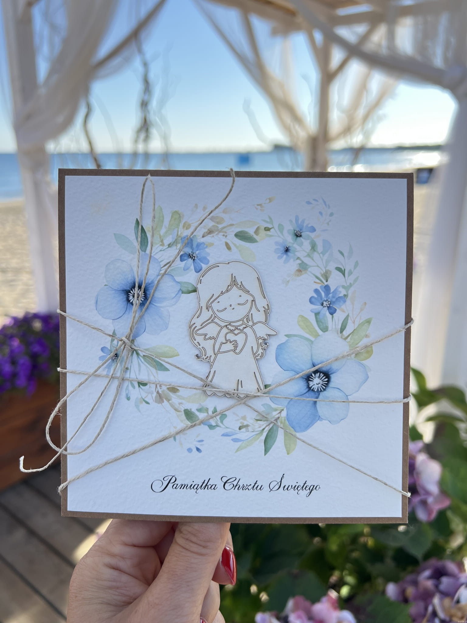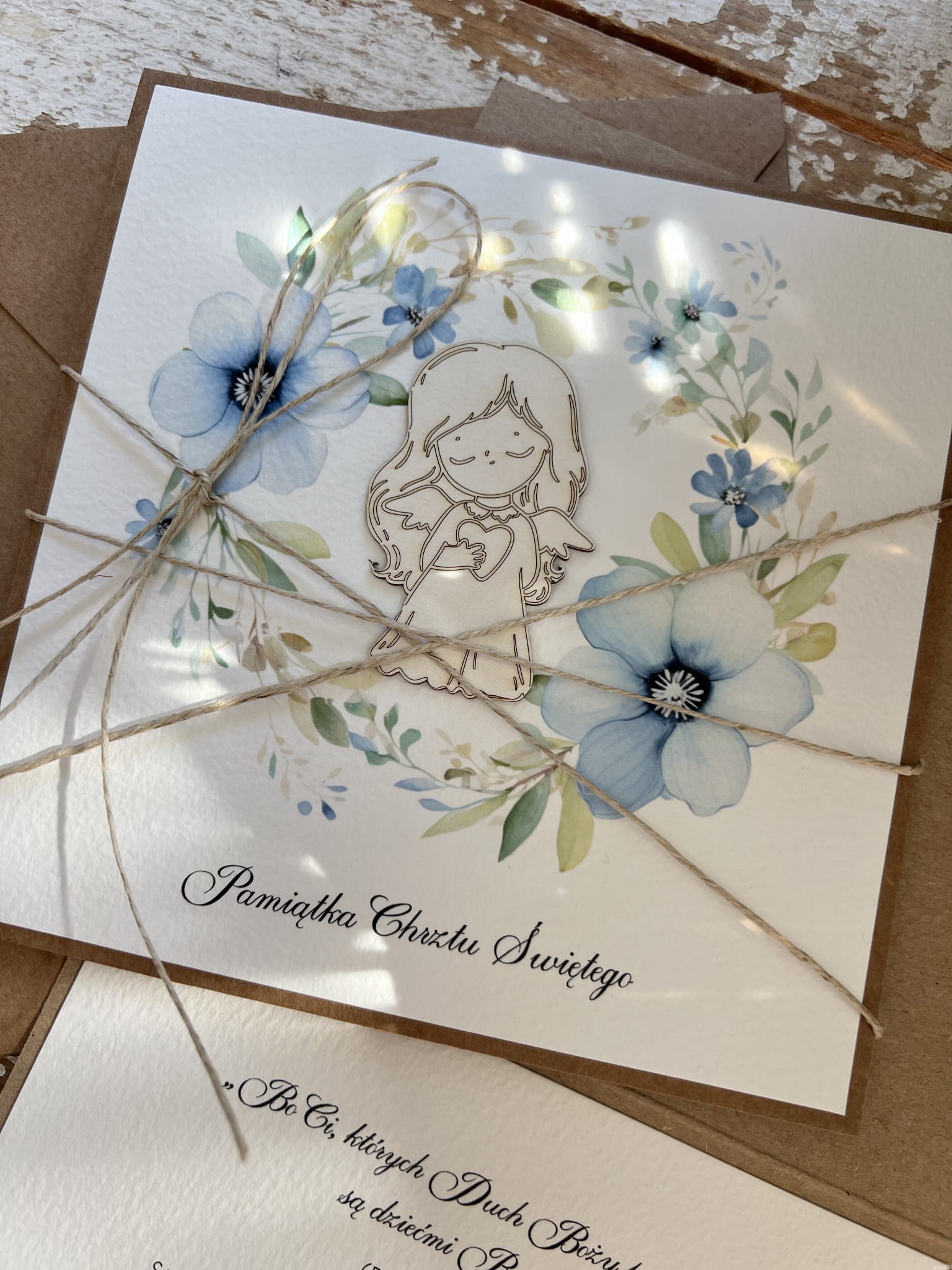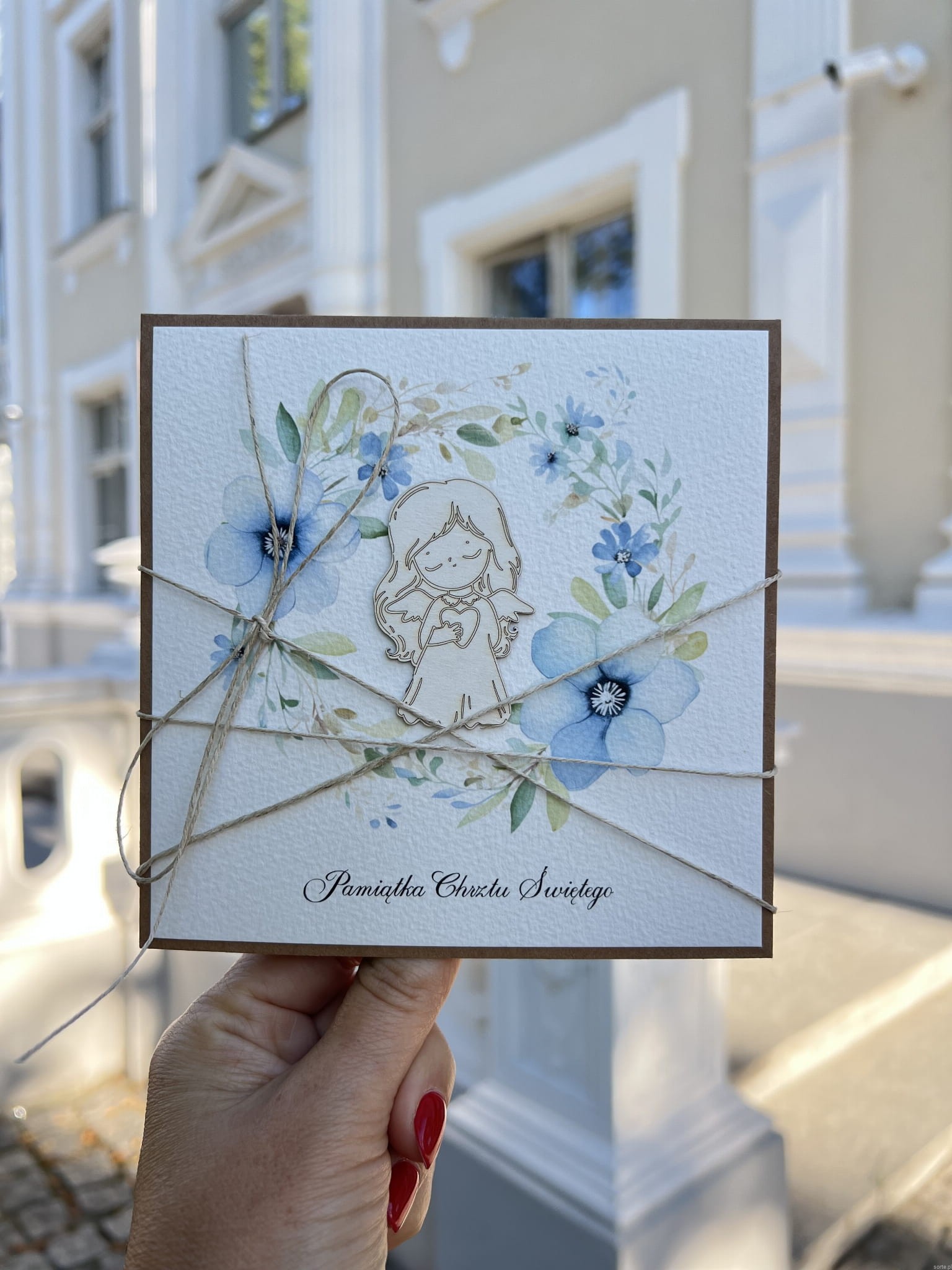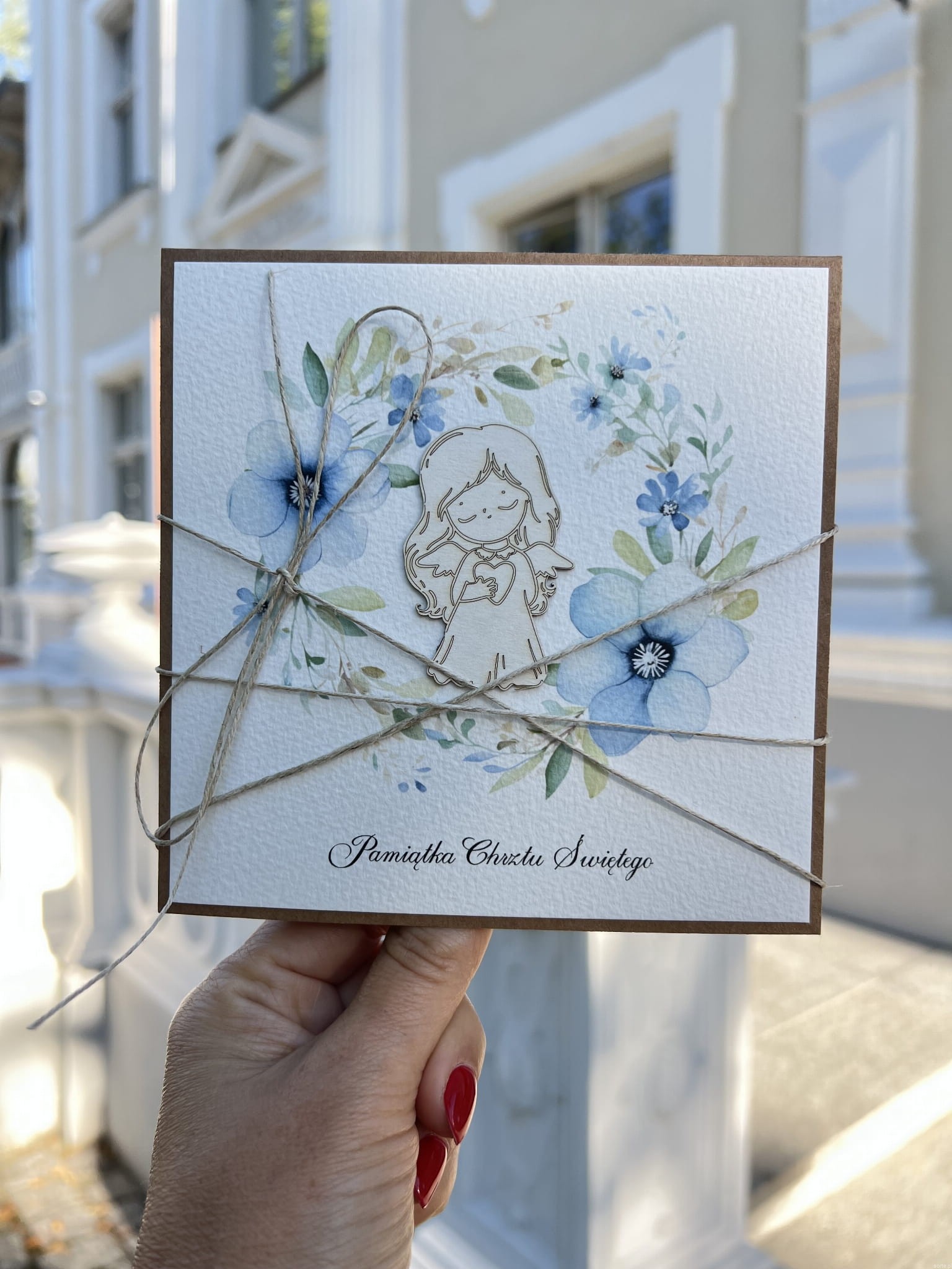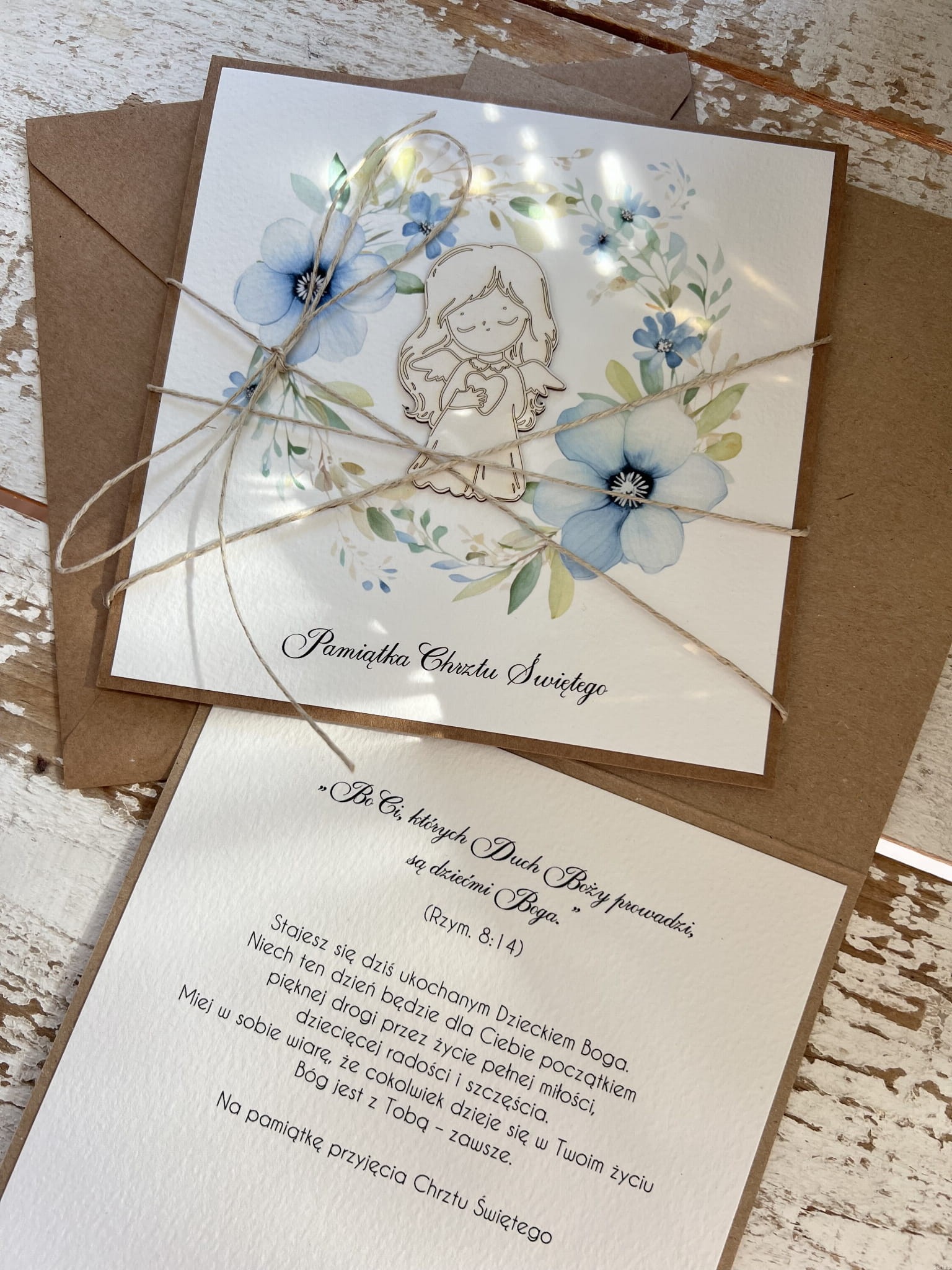 Wyjątkowa ręcznie robiona kartka na chrzest od matki chrzestnej, ojca, dziadków + najpiękniejsze życzenia od serca dla chłopca - pamiątka chrztu (z)
