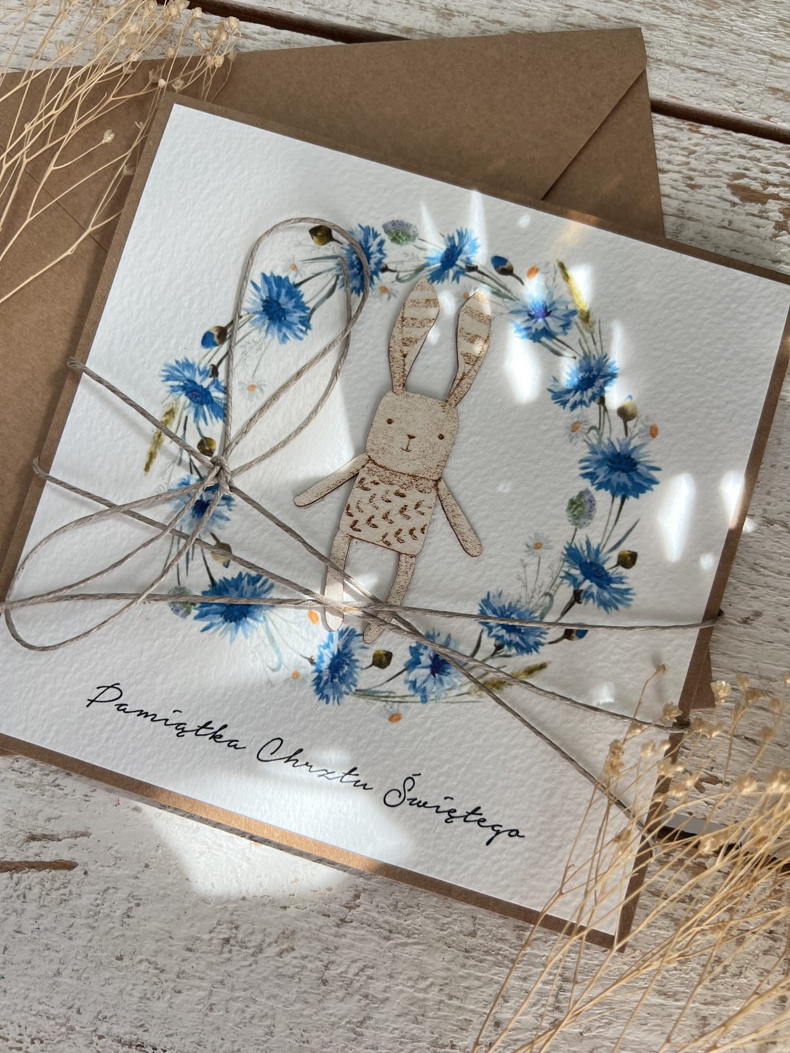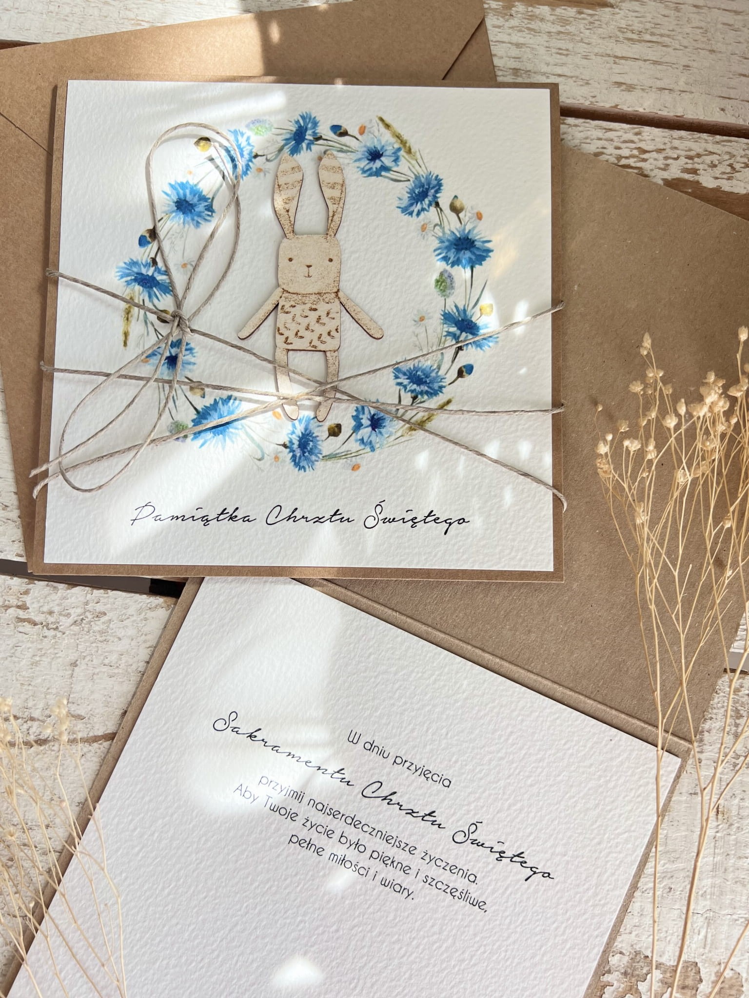 Wyjątkowa ręcznie robiona kartka na chrzest od matki chrzestnej, ojca, dziadków + najpiękniejsze życzenia od serca dla chłopca - pamiątka chrztu (z)
