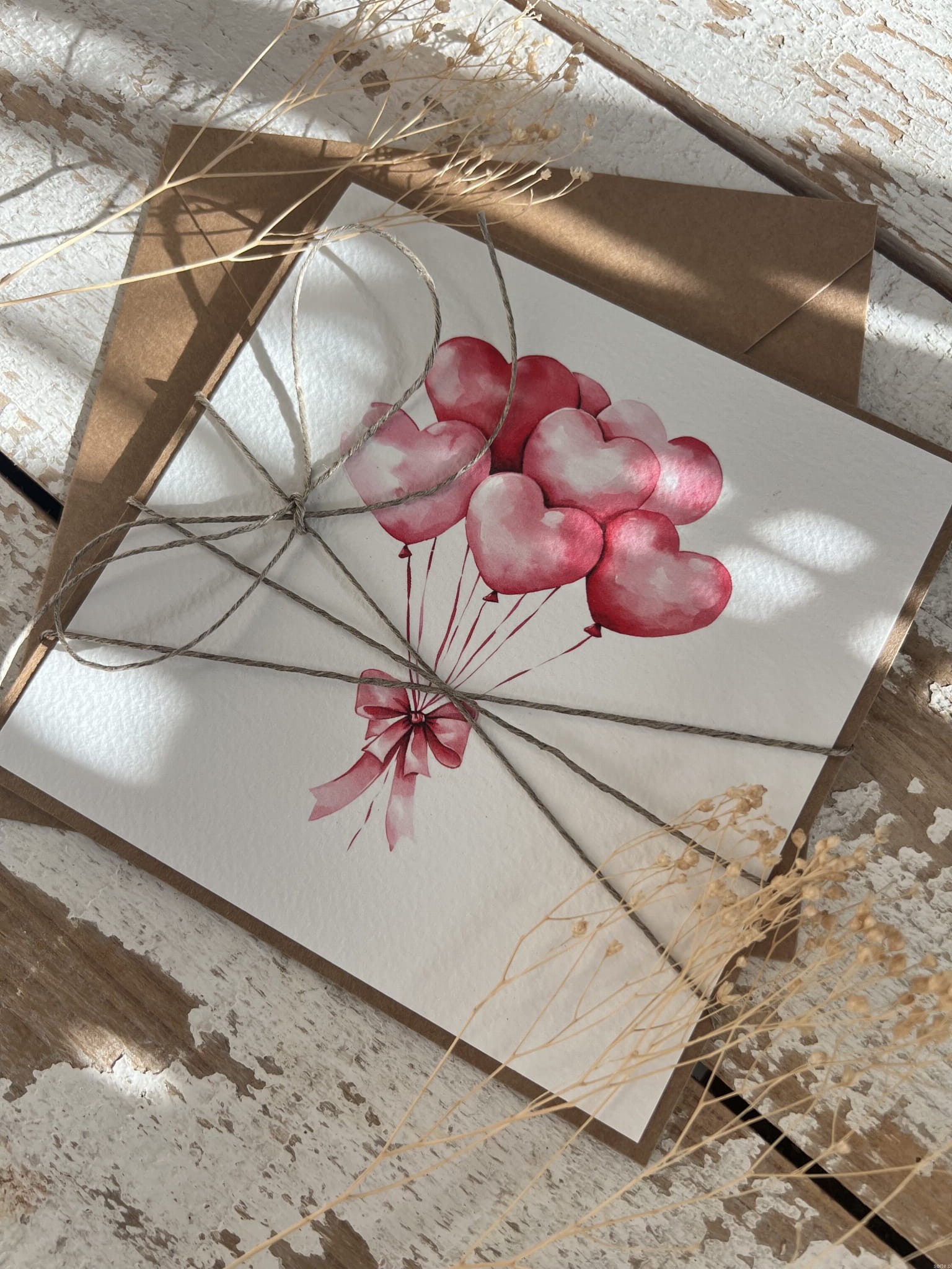 Wyjątkowa ręcznie robiona kartka na walentynki - walentynka z sercem z balonami (p)