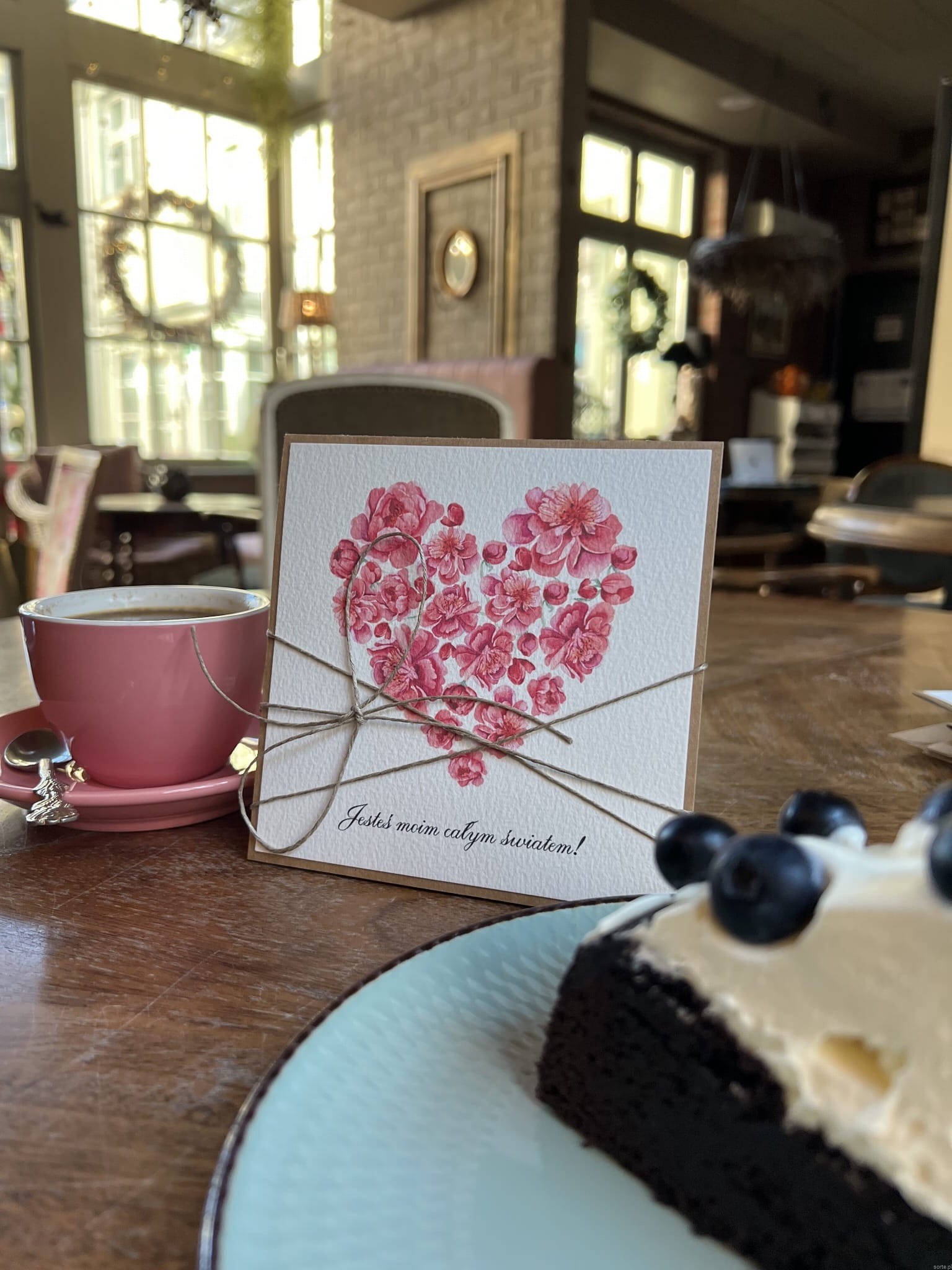 Wyjątkowa ręcznie robiona kartka prezent na walentynki, walentynkowa - walentynka z sercem z napisem Jesteś moim całym światem (P)