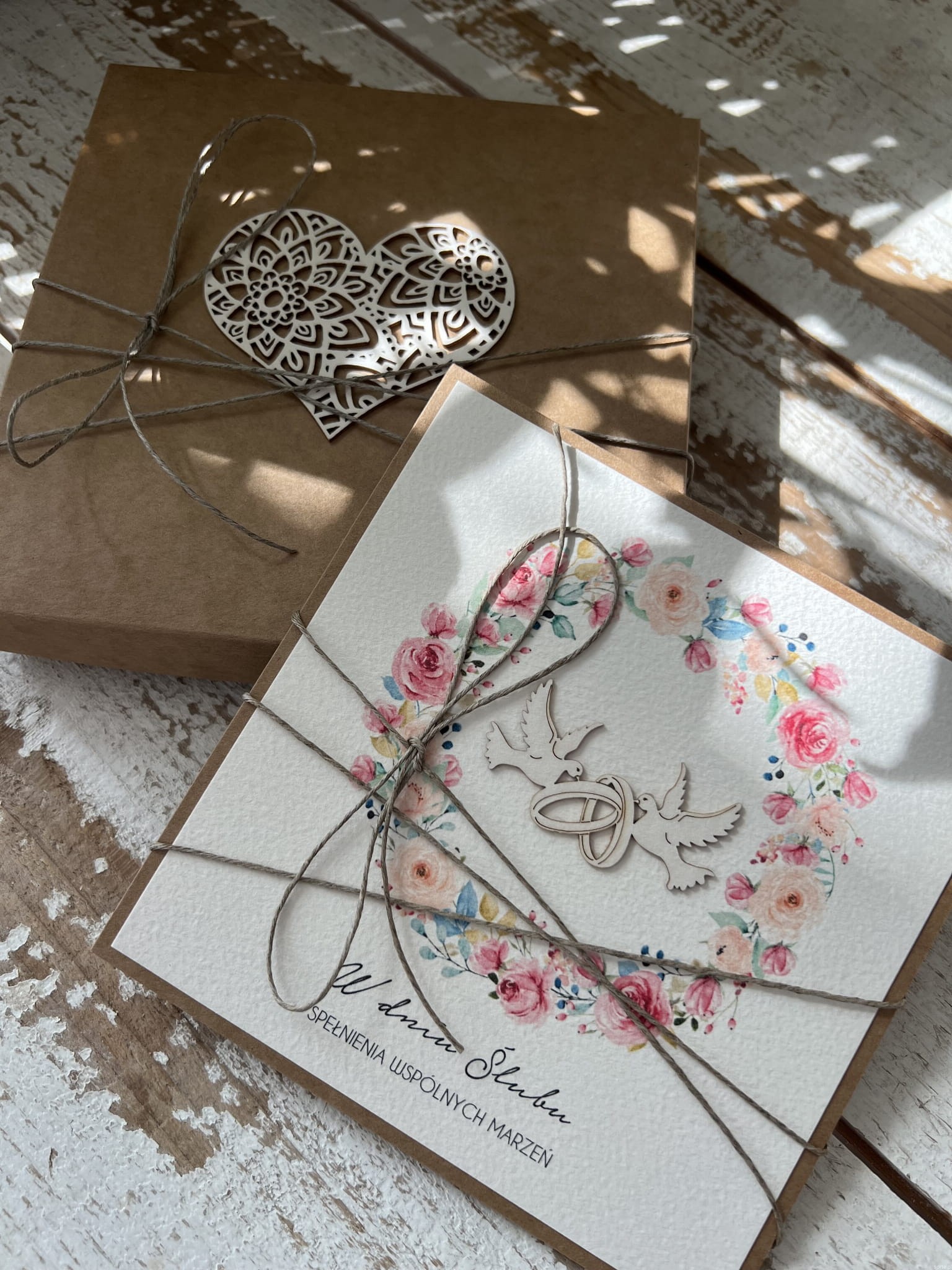 Wyjątkowa ręcznie robiona kartka ślubna + życzenia na ślub w pudełku