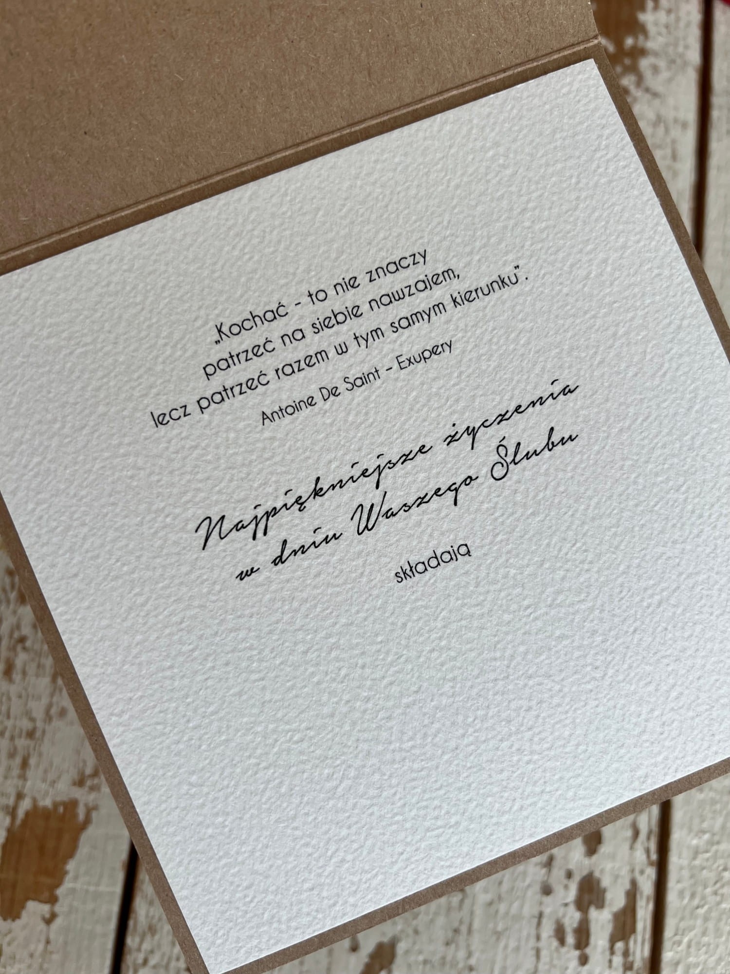Wyjątkowa ręcznie robiona kartka ślubna + życzenia na ślub w pudełku