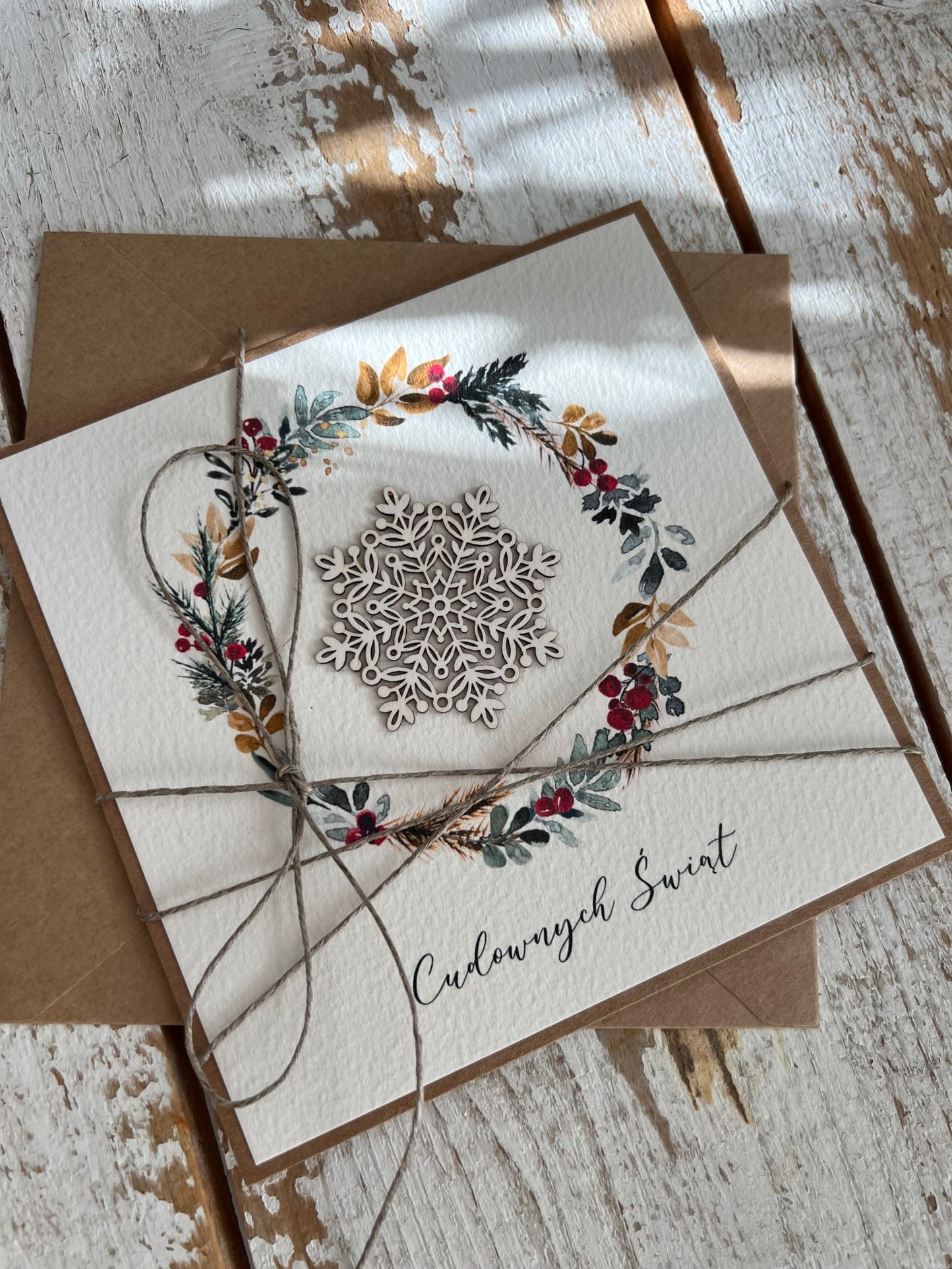 Wyjątkowa ręcznie robiona kartka świąteczna na Boże Narodzenie na piękne życzenia świąteczne - prezent