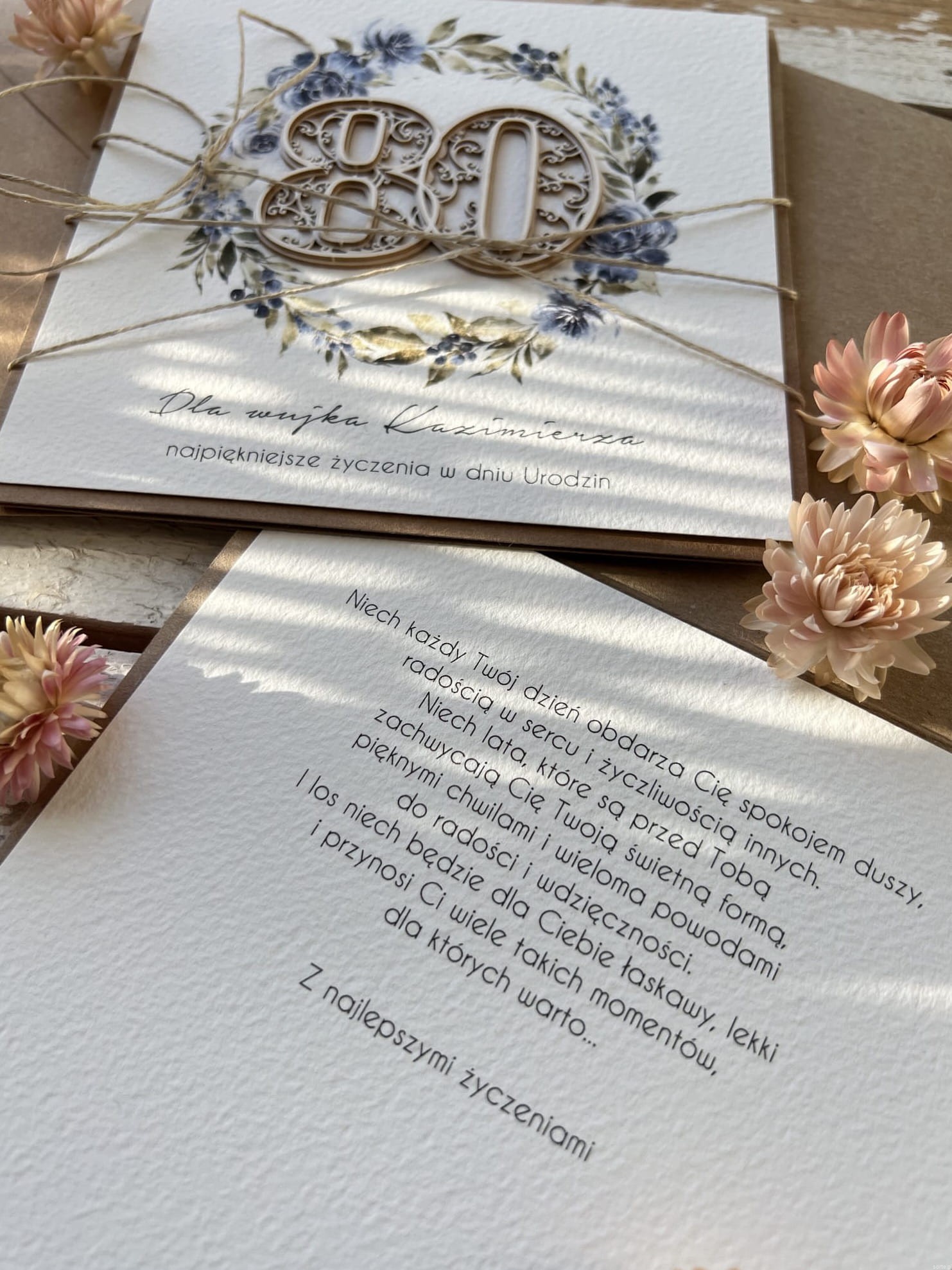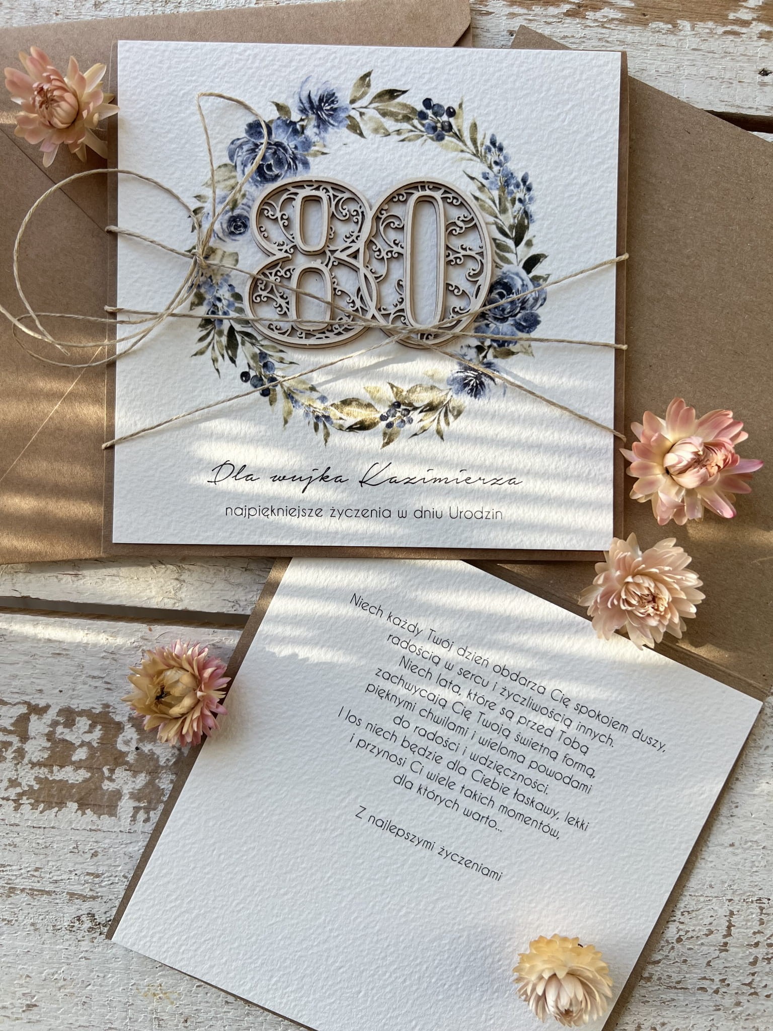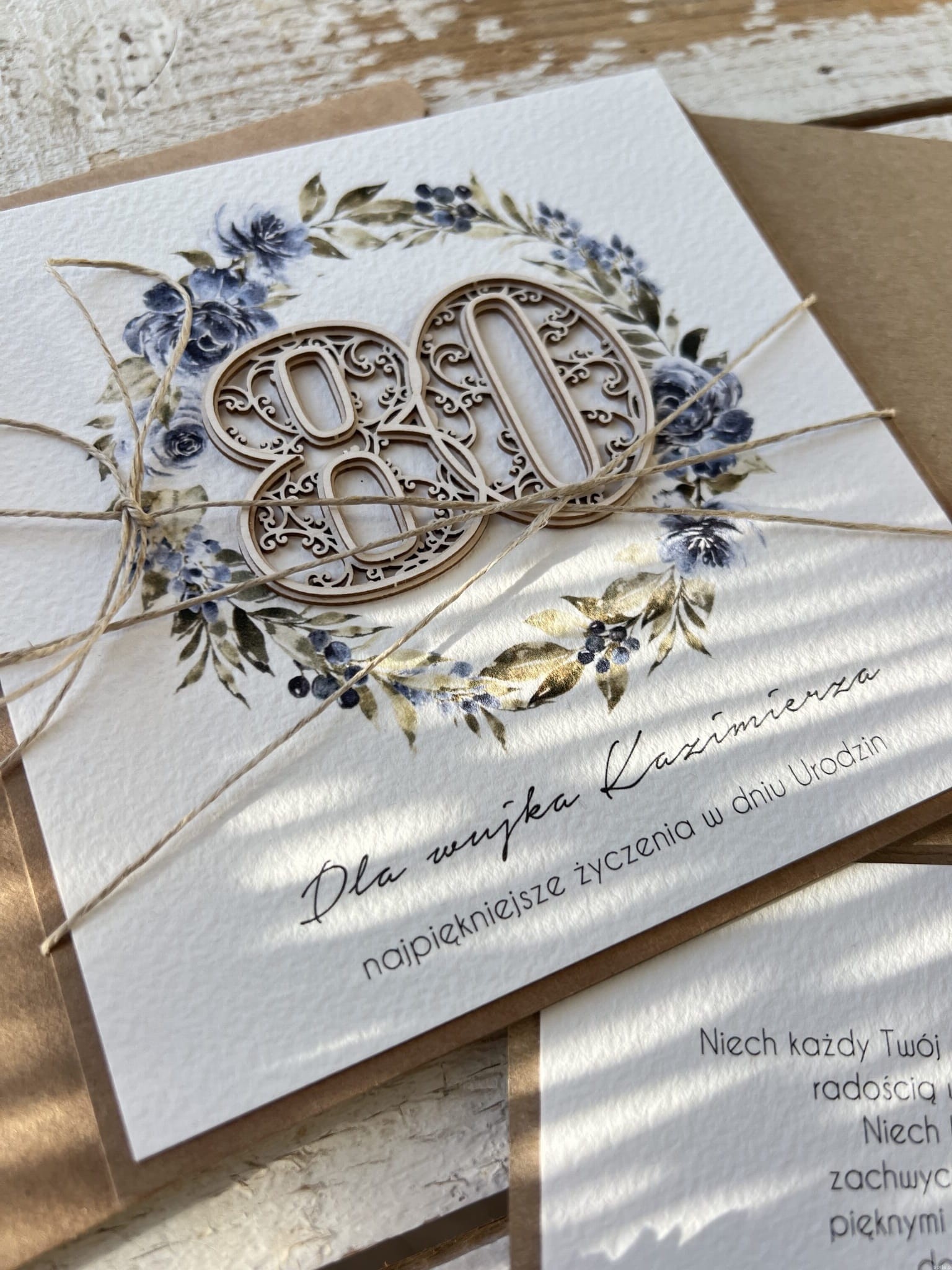 Wyjątkowa ręcznie robiona kartka życzenia na 80 urodziny, osiemdziesiątka - pomysł na prezent na osiemdziesiątkę