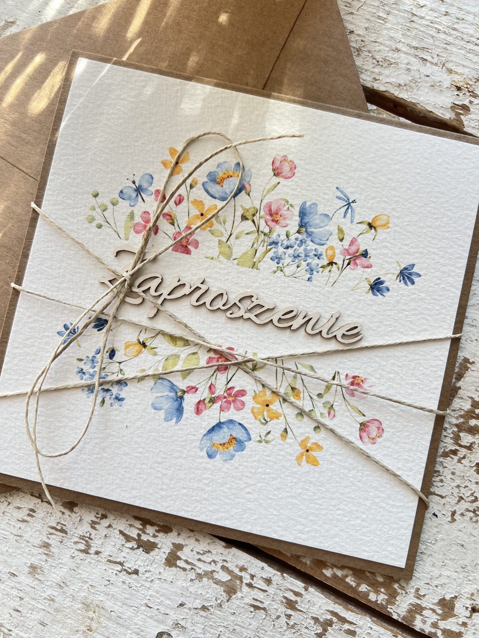 W środku kartka pusta gotowa do wypisania zaproszenia odręcznie.