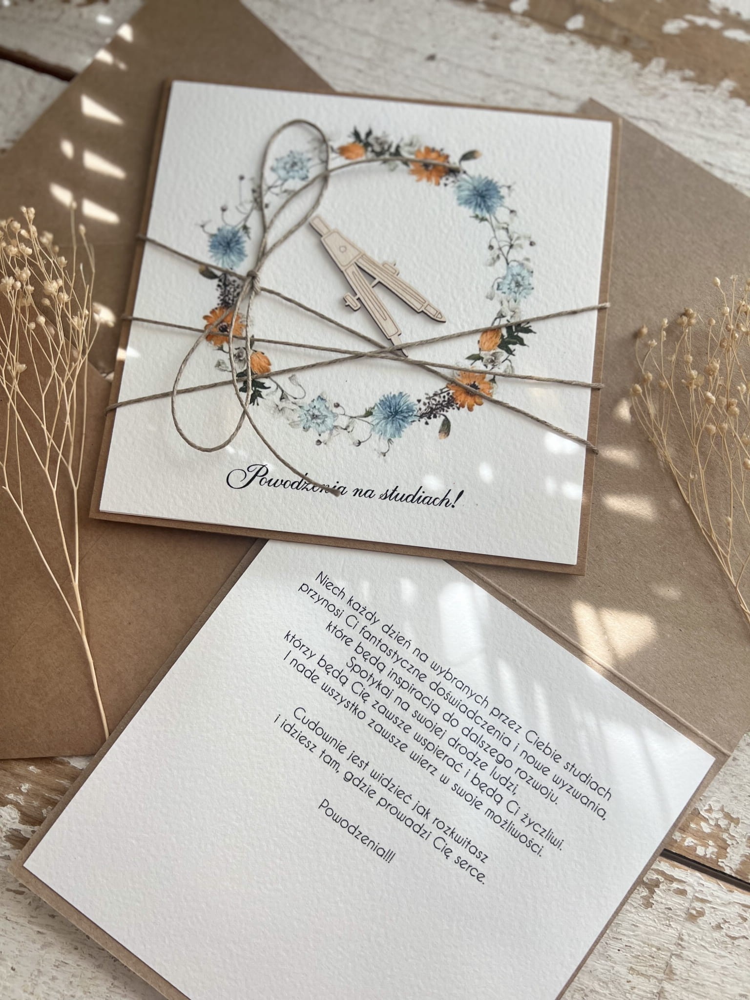Ręcznie robiona kartka gratulacje wyboru studiów - powodzenia na studiach