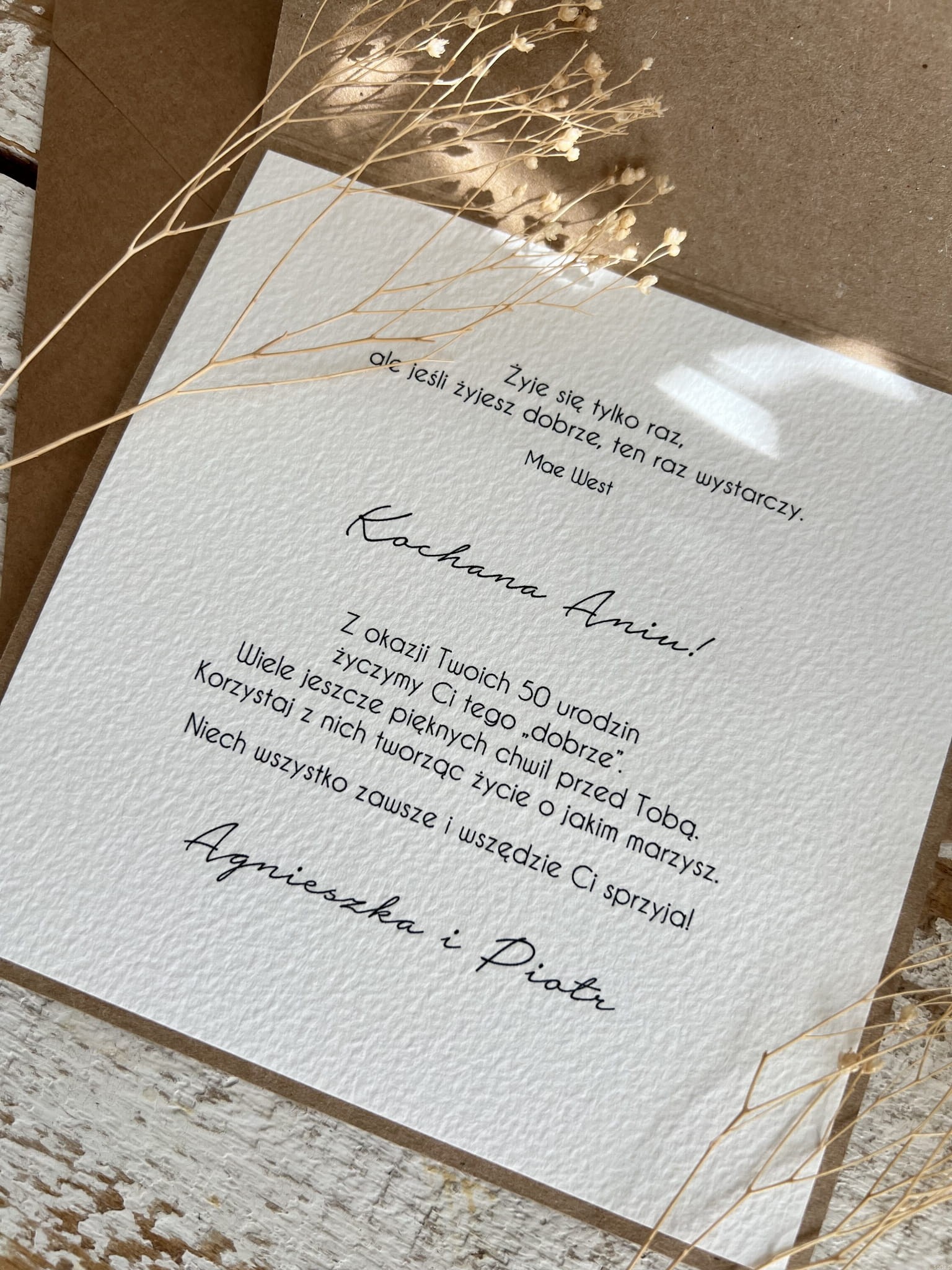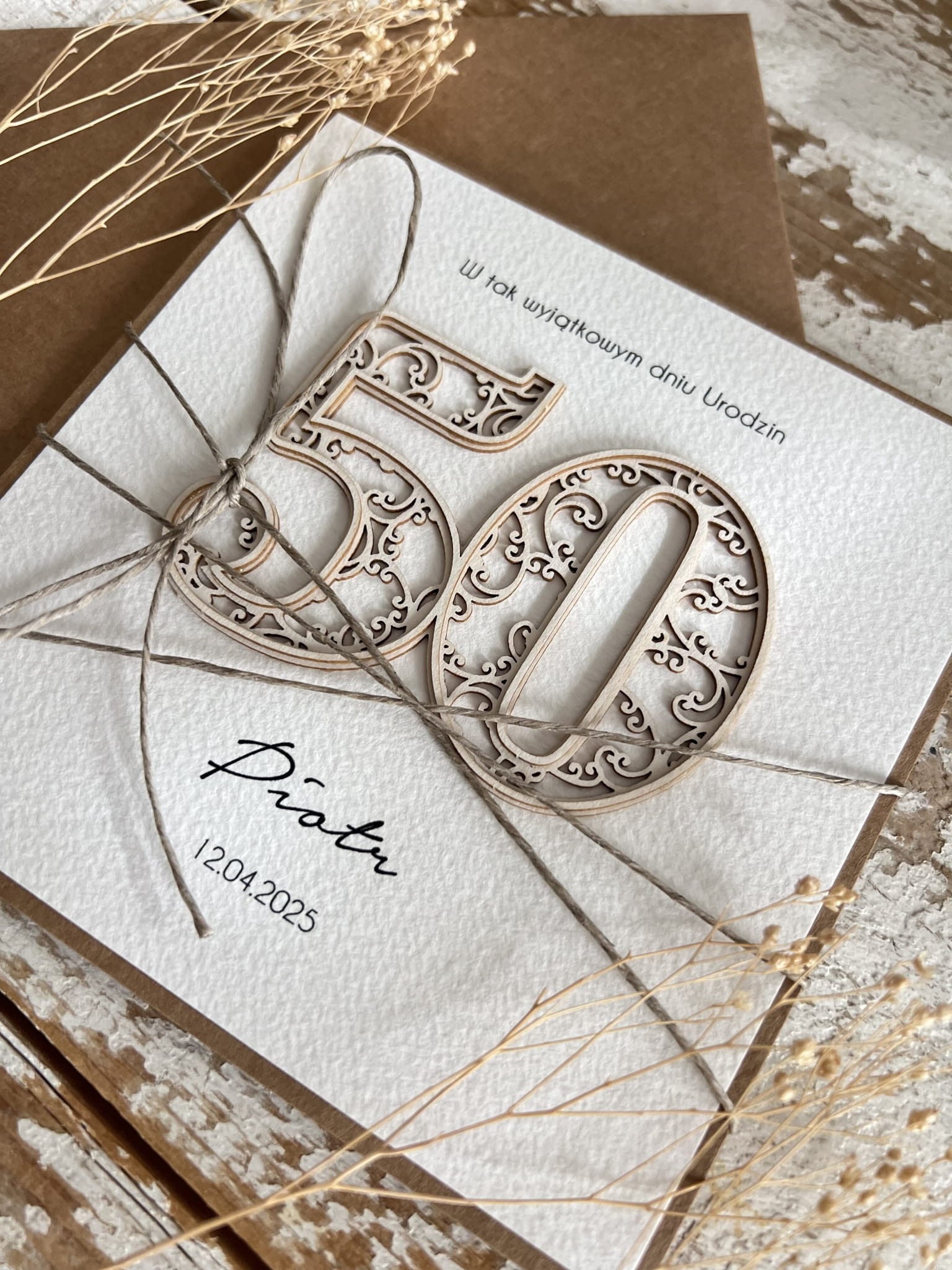 Wyjątkowa ręcznie robiona kartka prezent, życzenia na 50 urodziny z personalizacją dla mężczyzny, kobiety