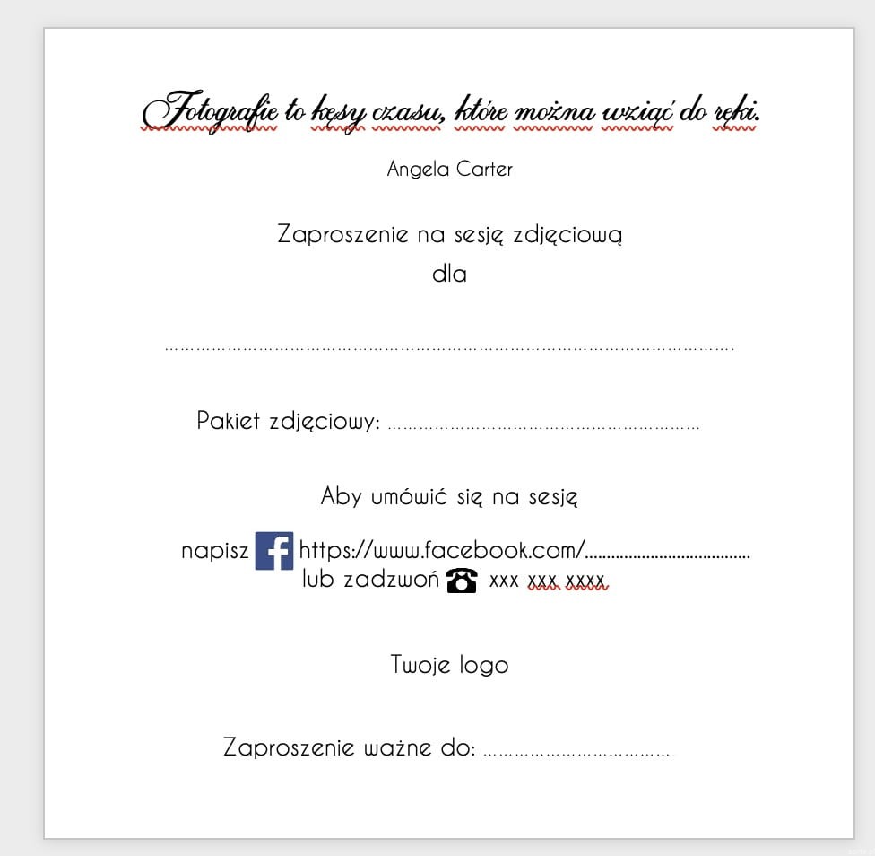 W środku zaproszenie zawierać będzie Twoje logo, dane. W cenie jest personalizacja pod kątem tego co proponujesz dla swoich klientów. W celu doprezycowania oczekiwań proszę o kontakt mailowy pracownia@sorte.pl